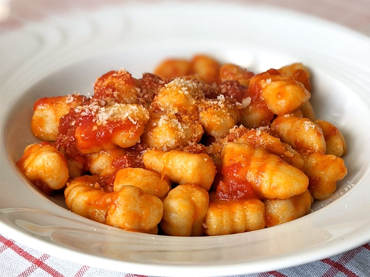 Gnocchi; noun; (in Italian cooking) small dumplings made from potato and flour, usually served with a sauce.