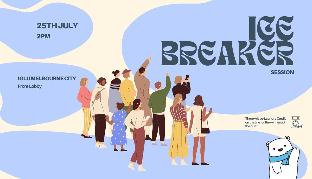 Hi everyone, are you new to Iglu or are you an old spirit floating around the property? Either way come down and meet new people and form lasting friendships! There will be ice-breaking games and also a quiz where you will be able to claim valuable laundry credits!