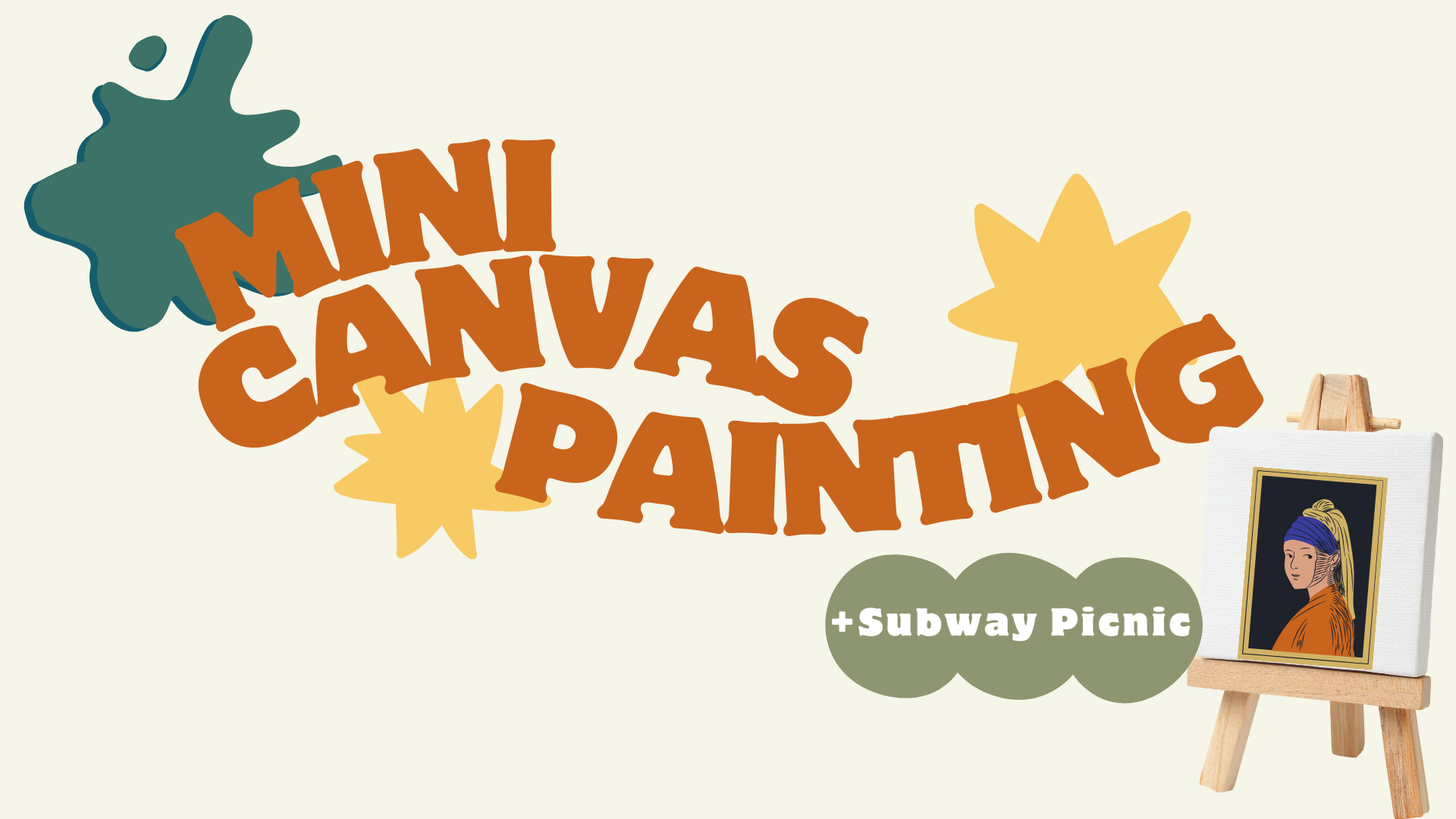End the week with a calming picnic in the park. We’ll have Subway Subs and Wraps for you to enjoy while you unleash your creativity on a mini canvas, with an easel for you to keep your art on display at home. Bring a picnic blanket and a warm jacket, and let the serenity carry you through the