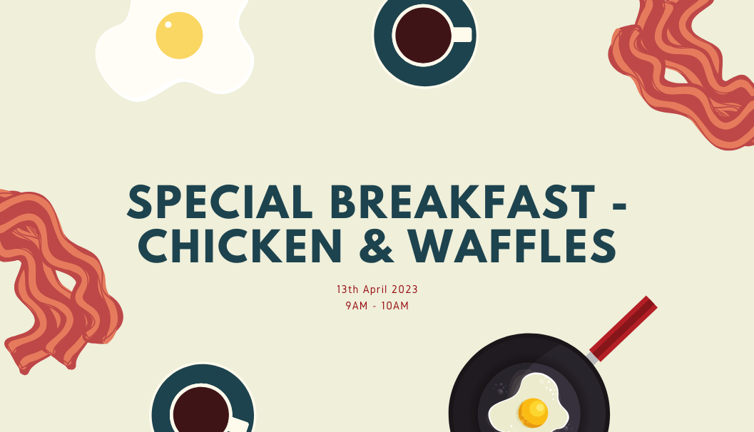 Chicken and waffles! Come get your chicken and waffles! A divine mix of sweet and savory on a carb-loaded base! We will be catering for both meat and non-meat eaters so come on down at 9am for a treat!