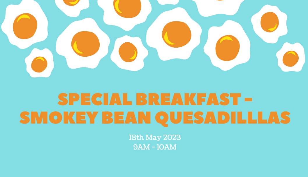 Come down for a spicy, delicious treat for special breakfast, as RL Amy serves up her version of Smokey Bean Quesadillas. There will also be several toppings to garnish. Gluten free, dairy free and vegetarian options available, so everyone is welcome!