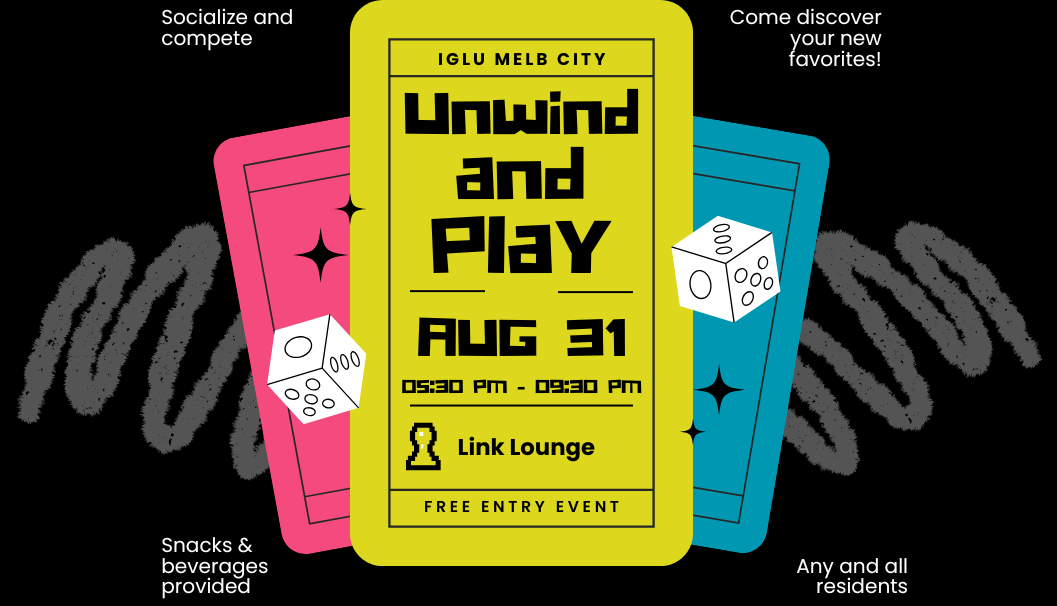 Get ready for the most epic gaming experience of the semester! Join us for “Unwind and Play,” a spectacular multi-station board game tournament that promises non-stop entertainment, friendly competition, and unforgettable memories. This isn’t just any game night – it’s your chance to discover new favorites and connect with fellow residents in the most fun way possible!